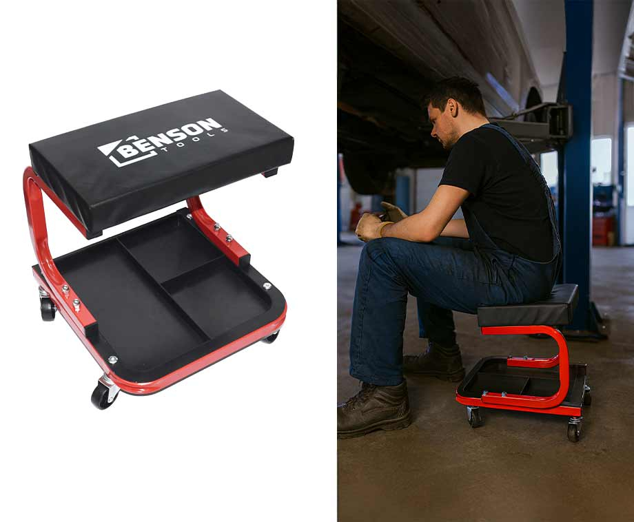De stevige zitting maakt het klussen comfortabeler en ontlast je rug. Perfect voor lange dagen in de garage of tijdens hobbyprojecten.